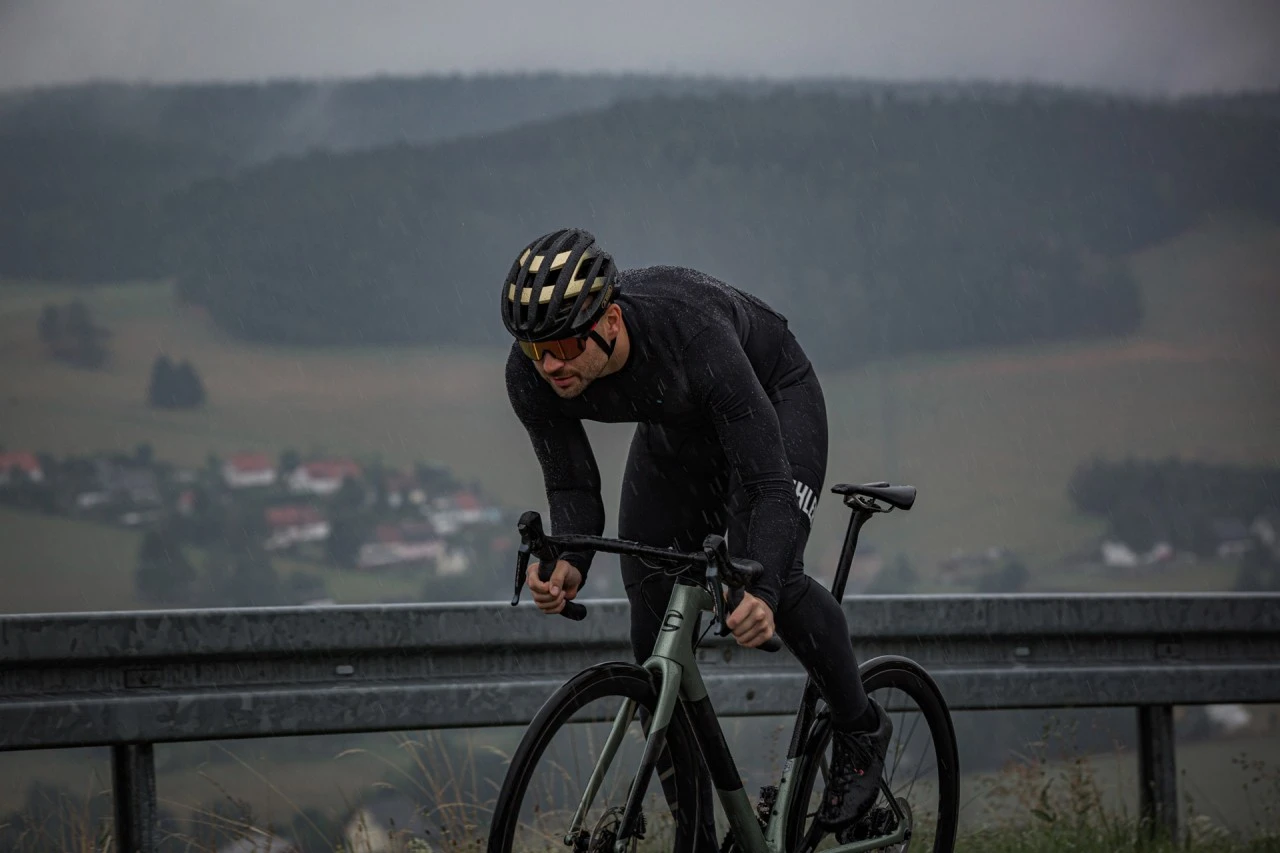 Unser Thermal Rain Radtrikot zeigt sich bei nasskaltem Wetter von seiner besten Seite. Speziell für die Übergangsperioden mit unvorhersehbarem und wechselhaftem Wetter entwickelt, schützt es vor Spritzwasser und Niesel und isoliert gegen Kälte, kann aber aufgrund seiner sehr guten Atmungsaktivität auch steigende Temperaturen ausgleichen.